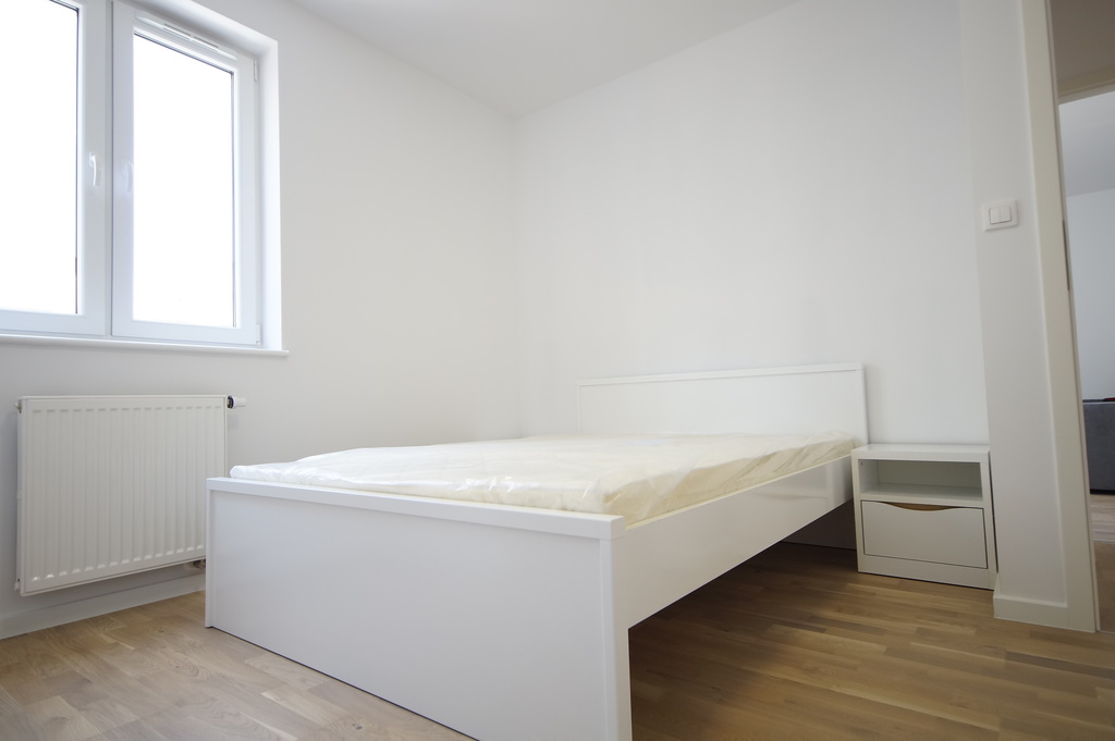 - Pokój 2 - o pow. ok. 12 m2 uposażony w nowe meble - szafę, łóżko, oraz biurko, na podłodze parkiet, ściany gładzone pomalowane.