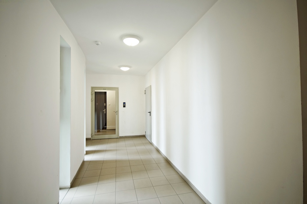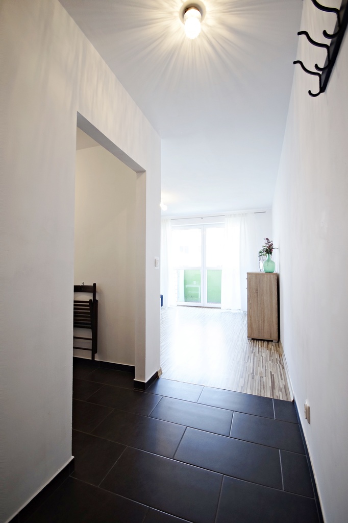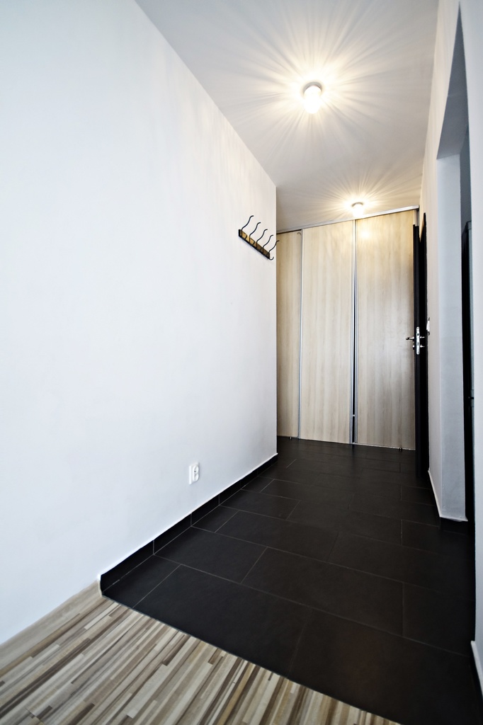 - Przedpokój ok.5 m2, uposażony w rozsuwaną szafę, na podłodze gres, ściany gładzone, malowane.