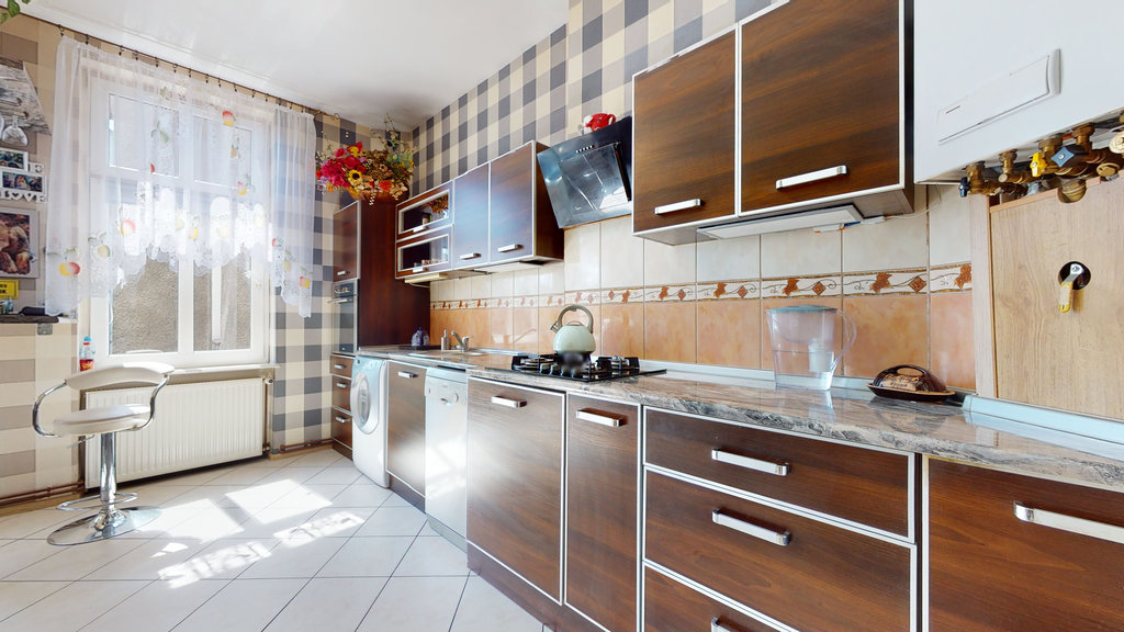 107 m2, III piętro, zadbana klatka, budynek ocieplony, brama zamykana, domofon.