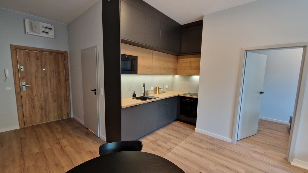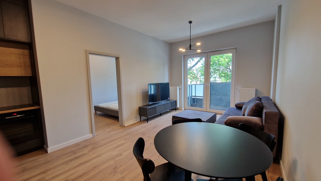 Do wynajęcia od zaraz nowe, jeszcze nieużywane mieszkanie 2 pokojowe na nowo wybudowanym osiedlu "Pogodno Gardenia". Nowoczesny budynek z windami wybudowany w 2024 roku. Dobrze skomunikowane miejsce z Centrum Szczecina z licznymi połączeniami komunikacji miejskiej (trawaj i autobus). Lokal znajduje się na 1 piętrze i posiada 39,98m2 na co składają się: