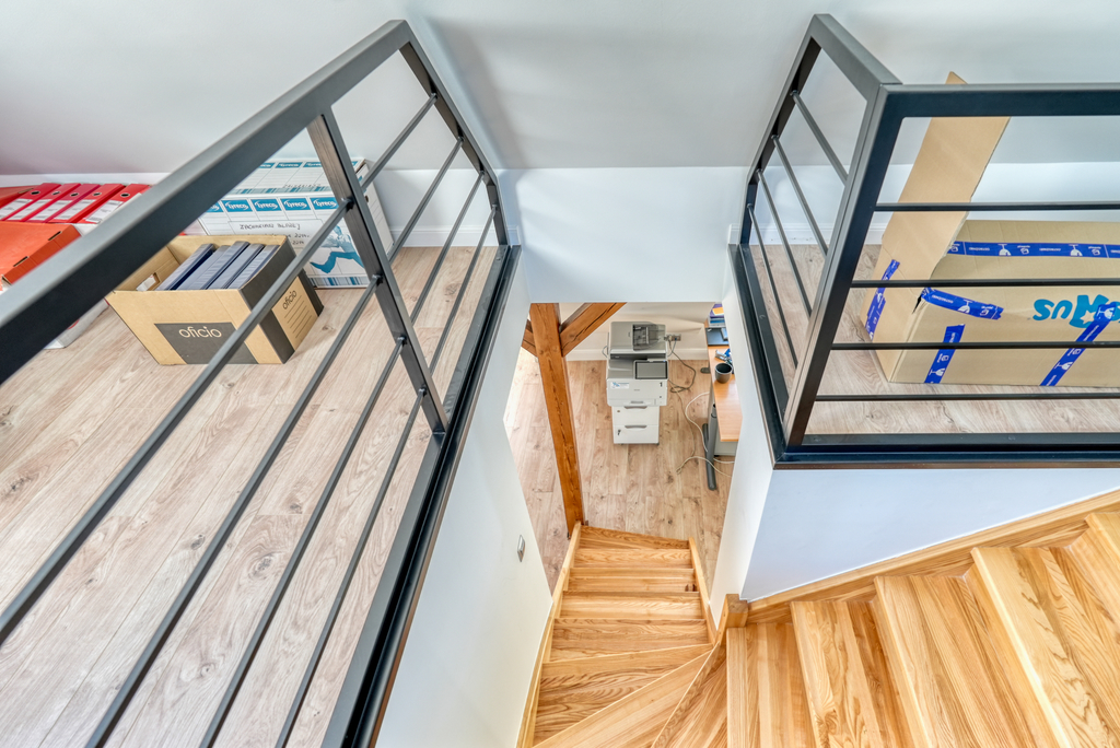 składa się z 3 pokoi, jeden z aneksem kuchennym i jeden pokój na antresoli (duża otwarta przestrzeń), korytarza, łazienki z WC .