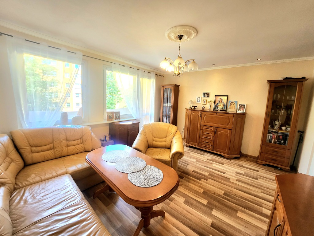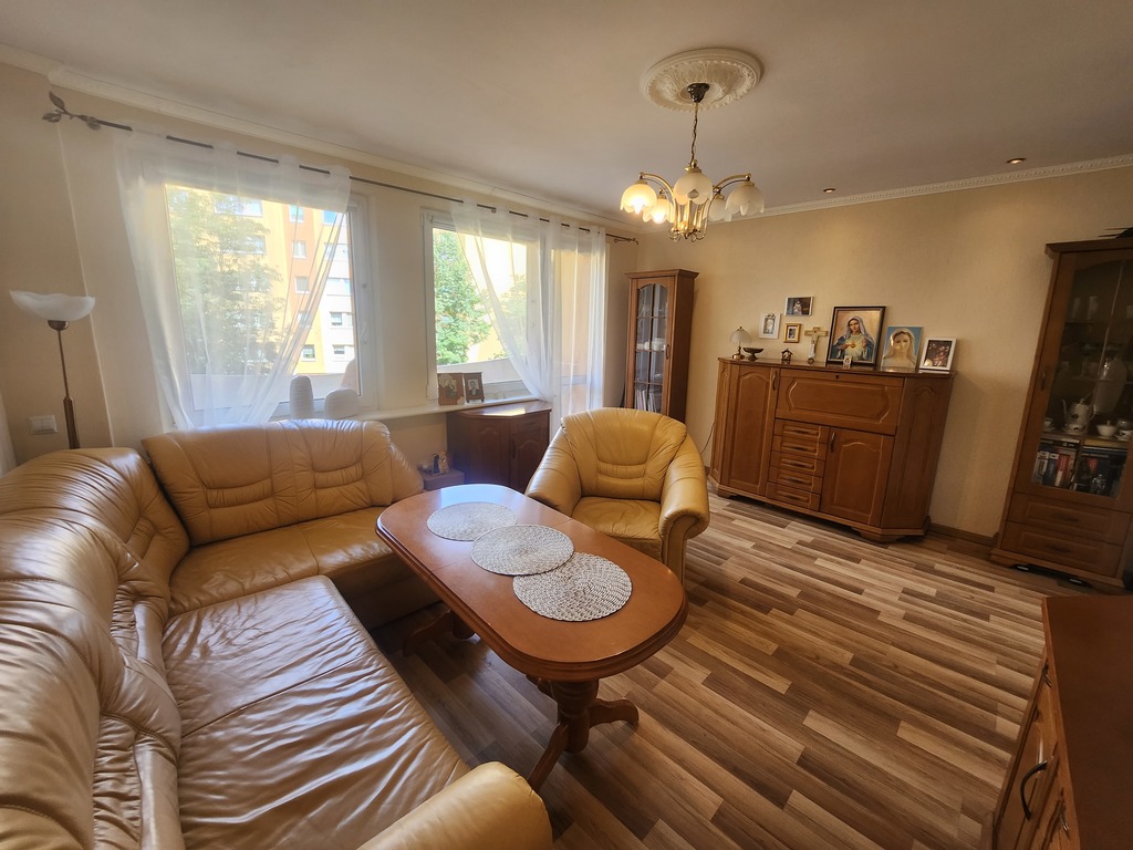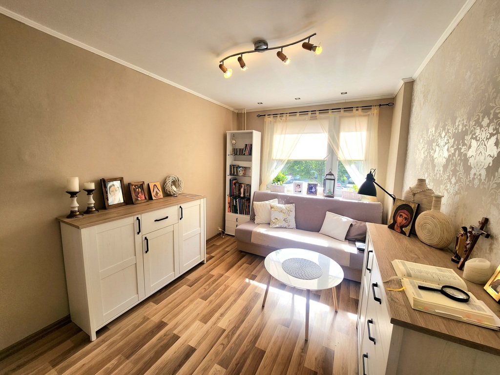 Mamy do zaoferowania mieszkanie na pierwszym piętrze niskiego bloku zlokalizowanego w centrum Polic. Na powierzchnię około 62m2 składają się: duży salon z wyjściem na balkon, dwie sypialnie, oddzielna kuchnia, łazienka oraz przedpokój. Mieszkanie bardzo czyste i zadbane, gotowe do zamieszkania. Na podłogach panele i terakota, łazienka w neutralnych kolorach, ściany tynkowane i wytapetowane, okna PCV. W cenie pozostają meble w zabudowie stałej, widoczne na zdjęciach. Wszystkie pomieszczenia są jasne i słoneczne, więc przestrzeń wydaje się jeszcze większa.