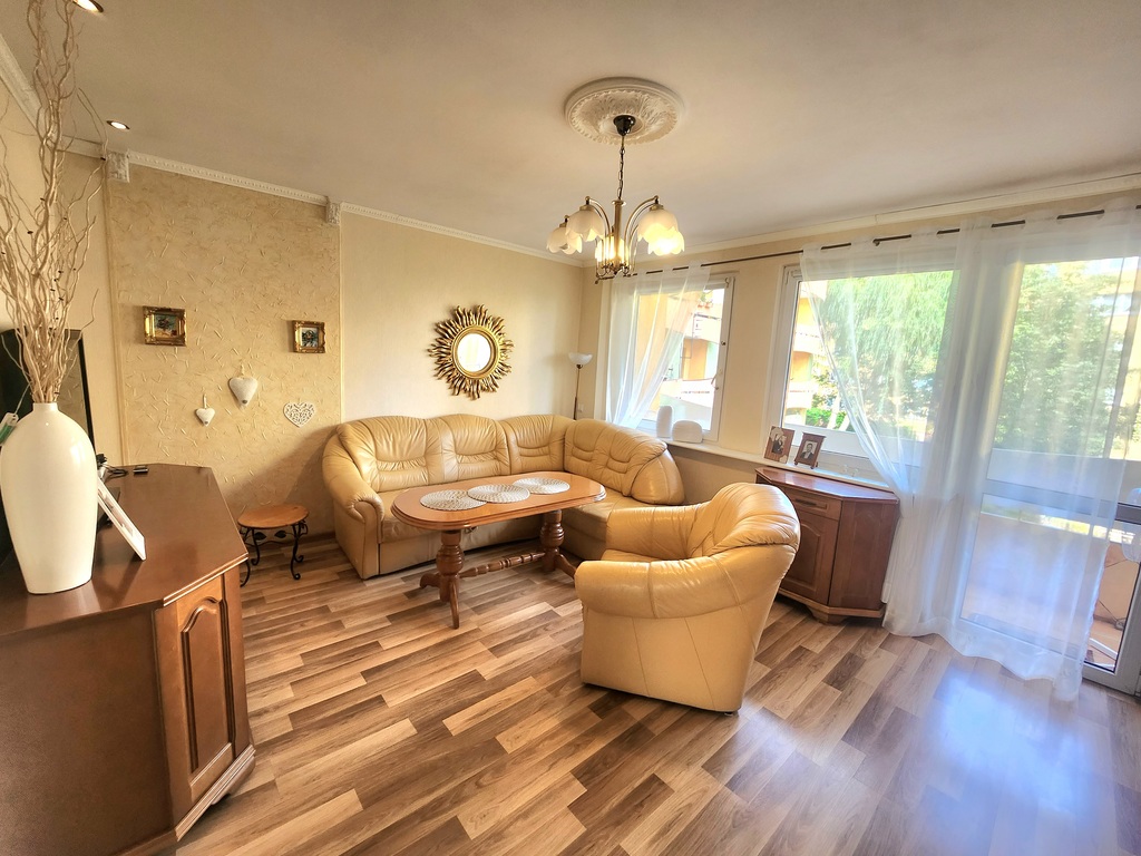 Niewątpliwym atutem jest doskonała lokalizacja, w pobliżu znajdują się sklepy, poczta, banki, szkoła i przedszkole. Z balkonu rozpościera się widok na skwer osiedlowy, dając tym samym możliwość odpoczynku i komfortu. Przynależna jest także piwnica.