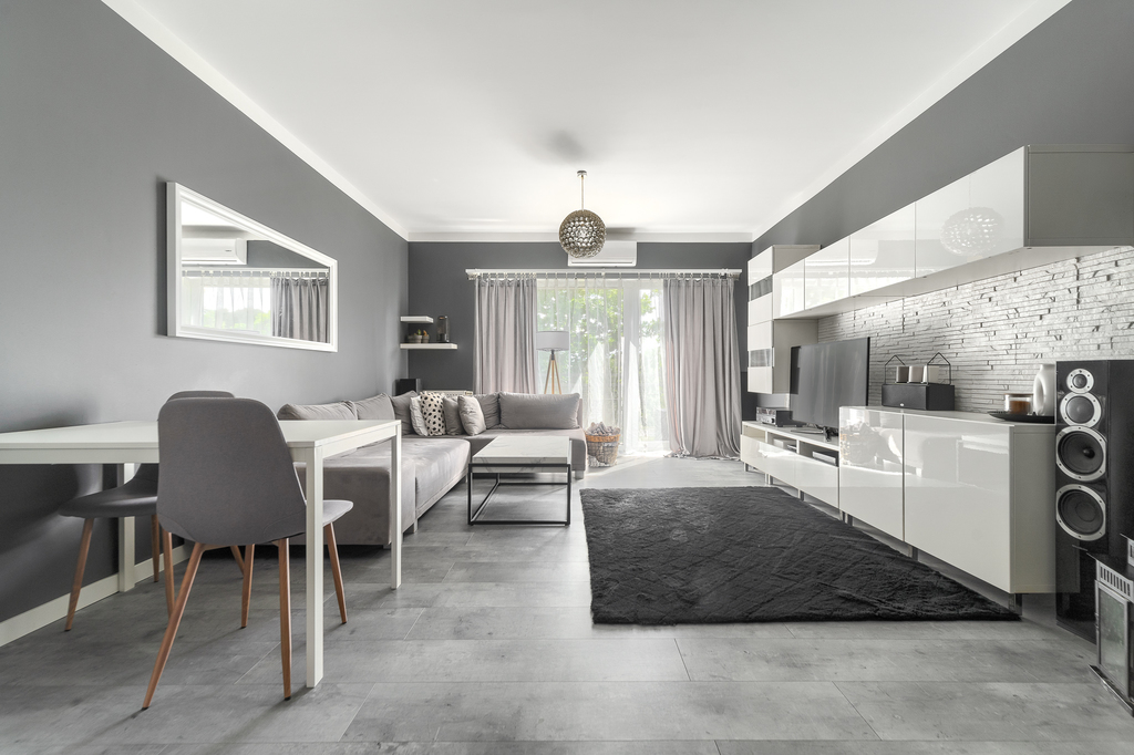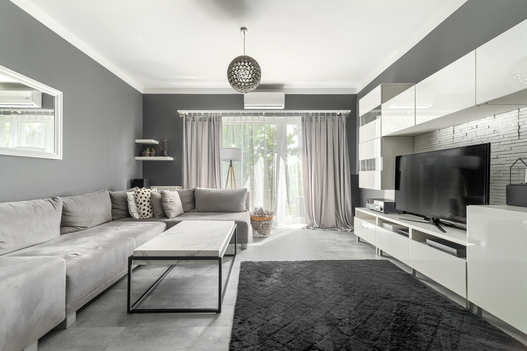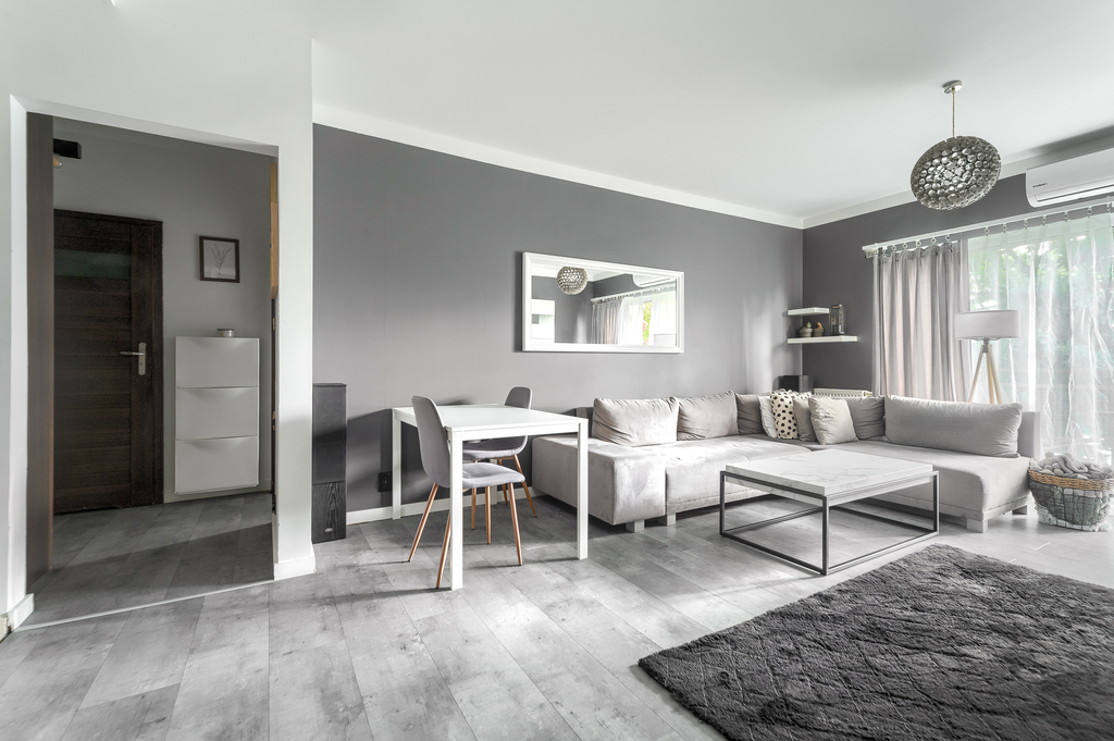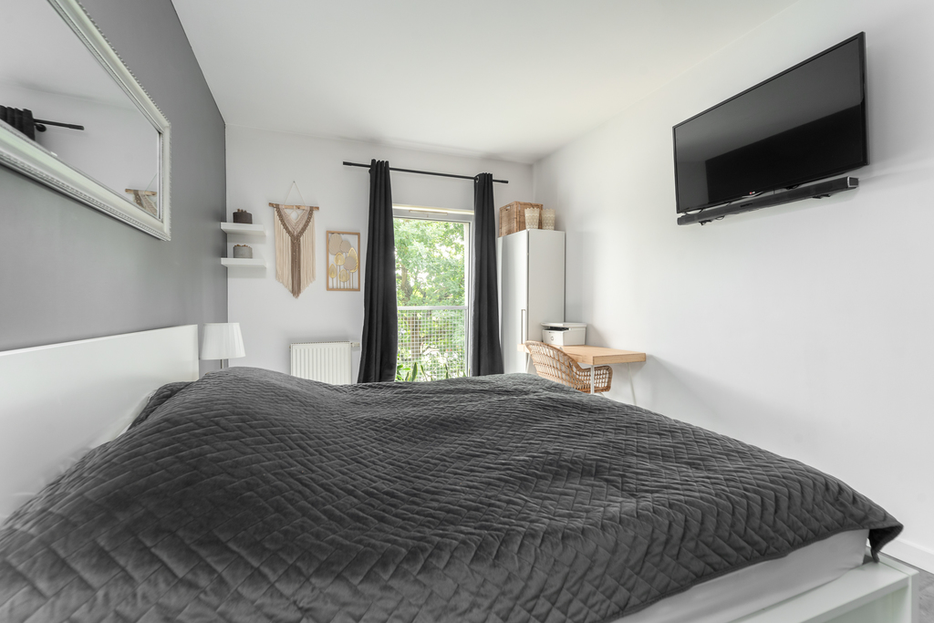W pokojach zamontowano duże, panoramiczne okna do podłogi, przez co pomieszczenia są maksymalnie doświetlone.