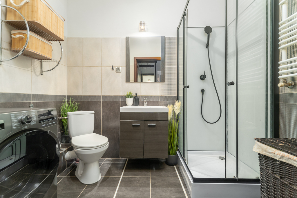 - łazienka z kabiną prysznicową i toaletą