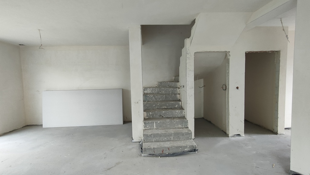 Powierzchnia działki wynosi około 350 m2. Działka częściowo ogrodzona. Na wjeździe możliwość parkowania samochodu. Budynek posiada bardzo dobre parametry termiczne. Okna PCV trzyszybowe. W salonie na parterze możliwość podłączenia kominka. Ściany zewnętrzne i wewnętrzne nośne z betonu komórkowego. Ściany wewnętrzne z bloczków gazobetonowych o grubości 12 cm. Ogrzewanie podłogowe. W cenie piec co dwuobiegowy z zamkniętą komorą spalania. Budynek oddzielony jest od drugiego ścianą i warstwą izolacji. Drzwi zewnętrzne do budynku antywłamaniowe. Zakończenie stanu deweloperskiego wiosna 2024. Działka ogrodzona siatką z trzech stron.