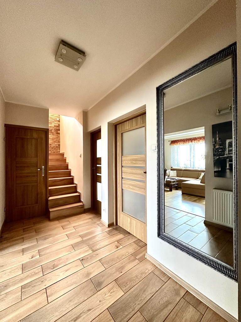 Nieruchomość jest bardzo zadbana i czysta, znajduje się w spokojnej okolicy, z dogodnym dostępem do infrastruktury miejskiej. W pobliżu znajdują się szkoły, sklepy oraz przystanki komunikacji miejskiej. To idealne miejsce dla osób szukających spokoju i wygody życia w bliskości z naturą. Serdecznie zapraszam na prezentację