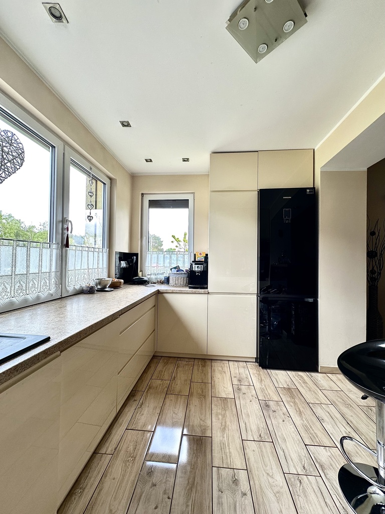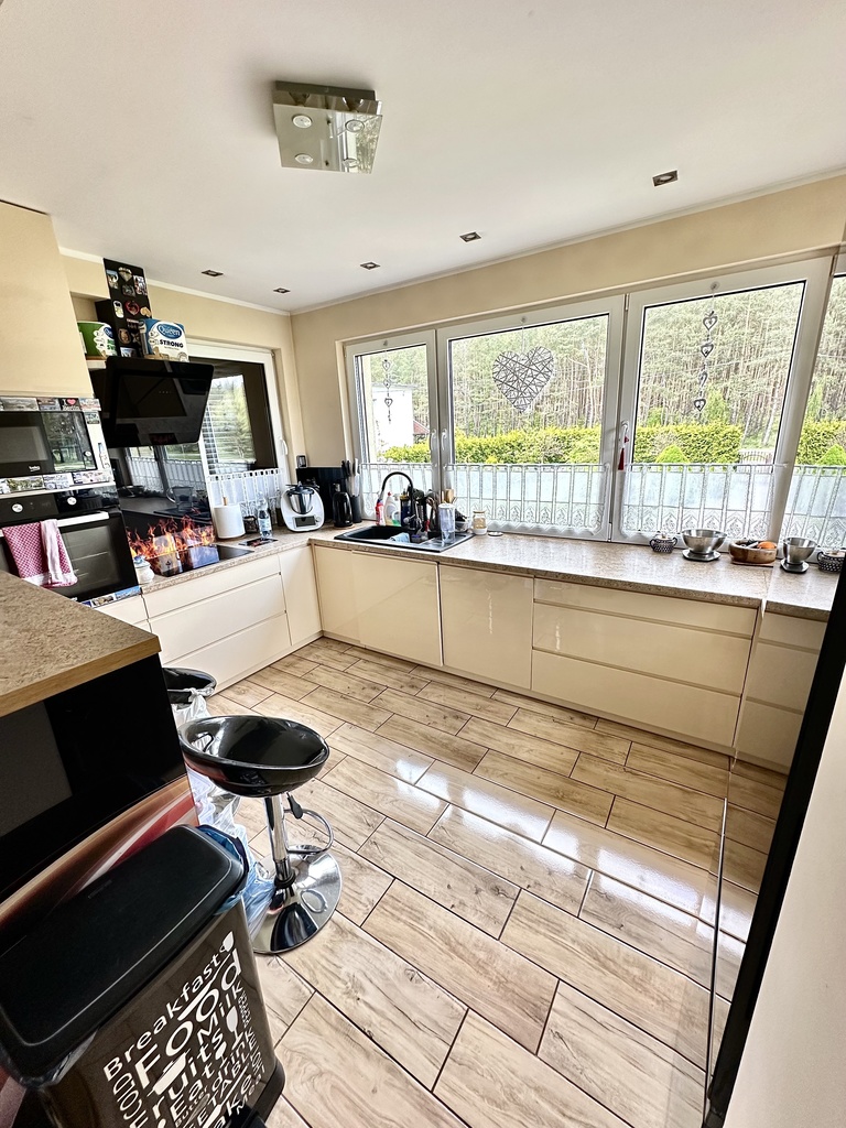 - Przestronna kuchnia o powierzchni ok.10 m2, w pełni wyposażona w sprzęt AGD, w tym płytę indukcyjną,