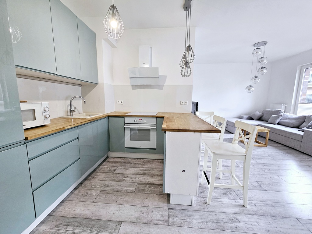 Oferuję do wynajęcia nowoczesne, 2-pokojowe mieszkanie o wysokim standardzie wykończenia. Mieszkanie znajduje się na pierwszym piętrze nowoczesnego bloku.