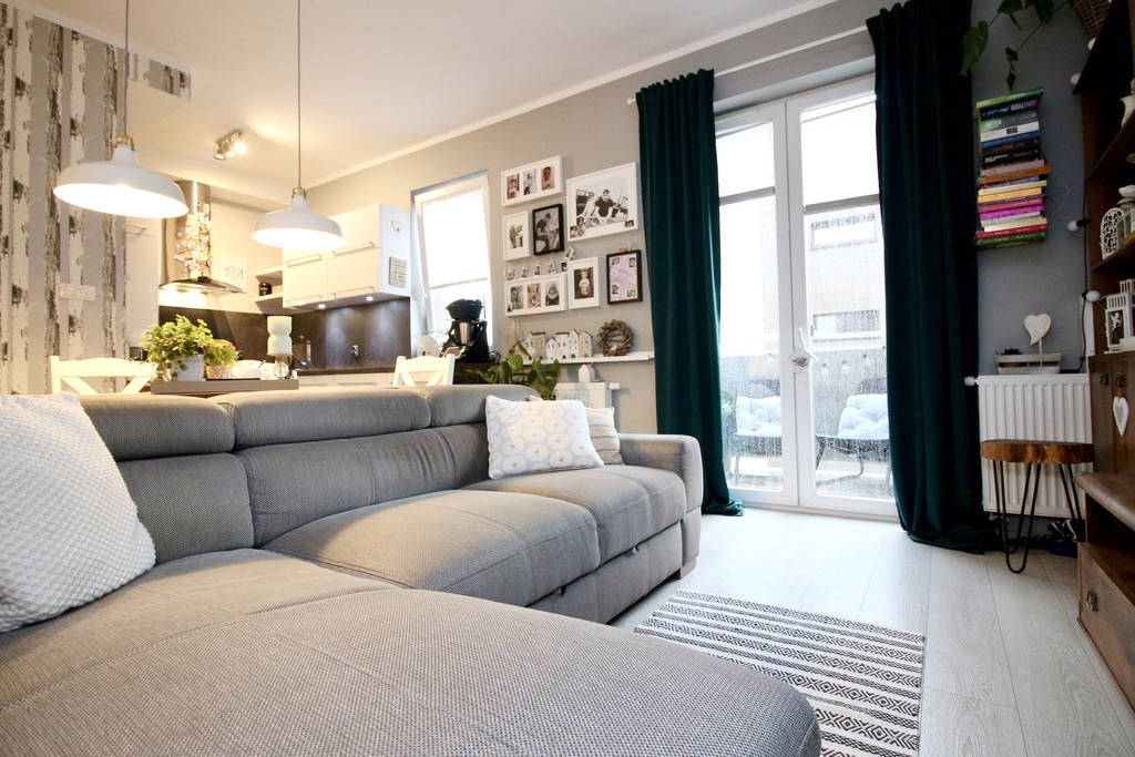 - salon z aneksem kuchennym i wyjściem na słoneczny balkon