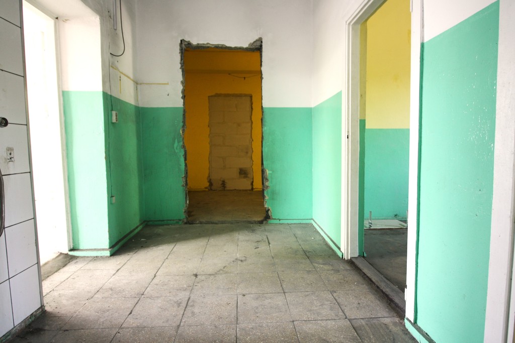Budynek parterowy o powierzchni 193,5m2 został podzielony na dwa mieszkania, 105m2 i 87,87m2.