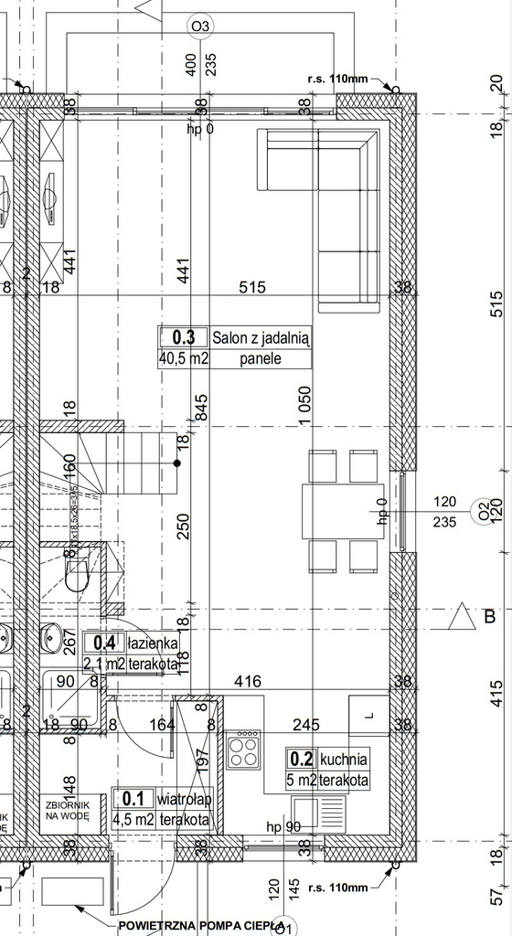 - salon z jadalnią o pow. 40,5m2