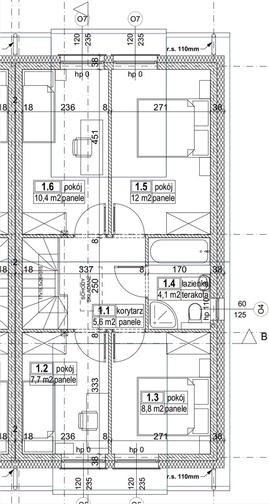 - cztery pokoje o pow. 12, 10, 9, 8,8m2