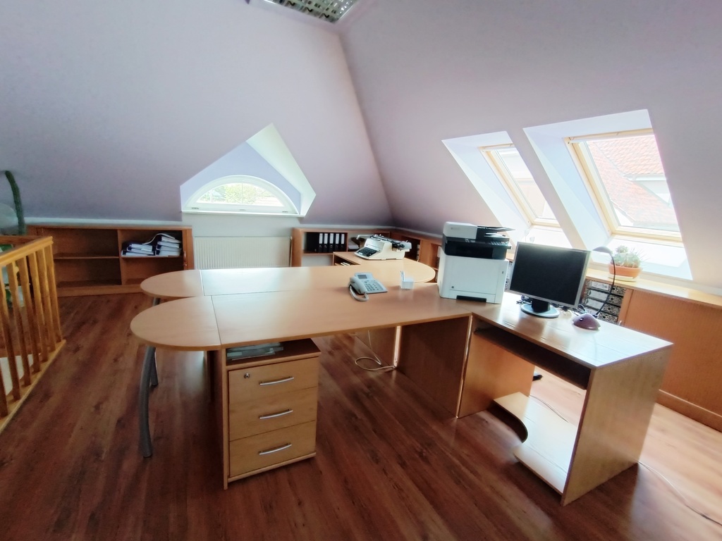 - dodatkowa przestrzeń biurowa z osobnym wejściem mogąca stanowić dodatkową przestrzeń mieszkalną z własną kuchnią i łazienką