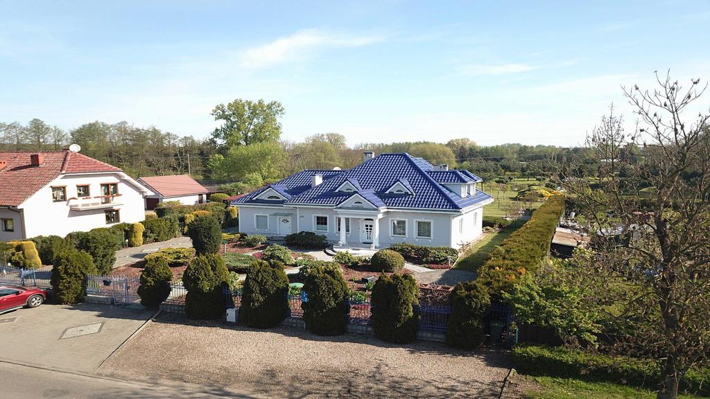 Dworek Anna Maria III wybudowany i oddany do użytku w roku 2003. Powierzchnia użytkowa 233,2 m2, całkowita 280,2 m2. Do budowy wykorzystano materiały wysokiej jakości, m.in ściany wykonane z 24 cm pustaków porotherm z ociepleniem styropianem 10 cm. Dach pokryty pięknie prezentującą się dachówką creaton (50 lat gwarancji), ocieplony wełną. Warto także wspomnieć o stolarce okiennej na którą składają się wysokiej jakości okna mahoniowe dodatkowo w pełni zautomatyzowane rolety. System alarmowy. Płot przed domem zaprojektowany przez firmę Preiss ze 100 letnią gwarancją. Na bieżąco wykonywane wszelkie niezbędne prace konserwacyjne, czy remontowe. Parter budynku dysponuje ogrzewaniem podłogowym, w pozostałej części domu ogrzewanie gazowe z pieca. Pełna dokumentacja projektowo-techniczna jest oczywiście dostępna. Księga wieczysta bez żadnych obciążeń.