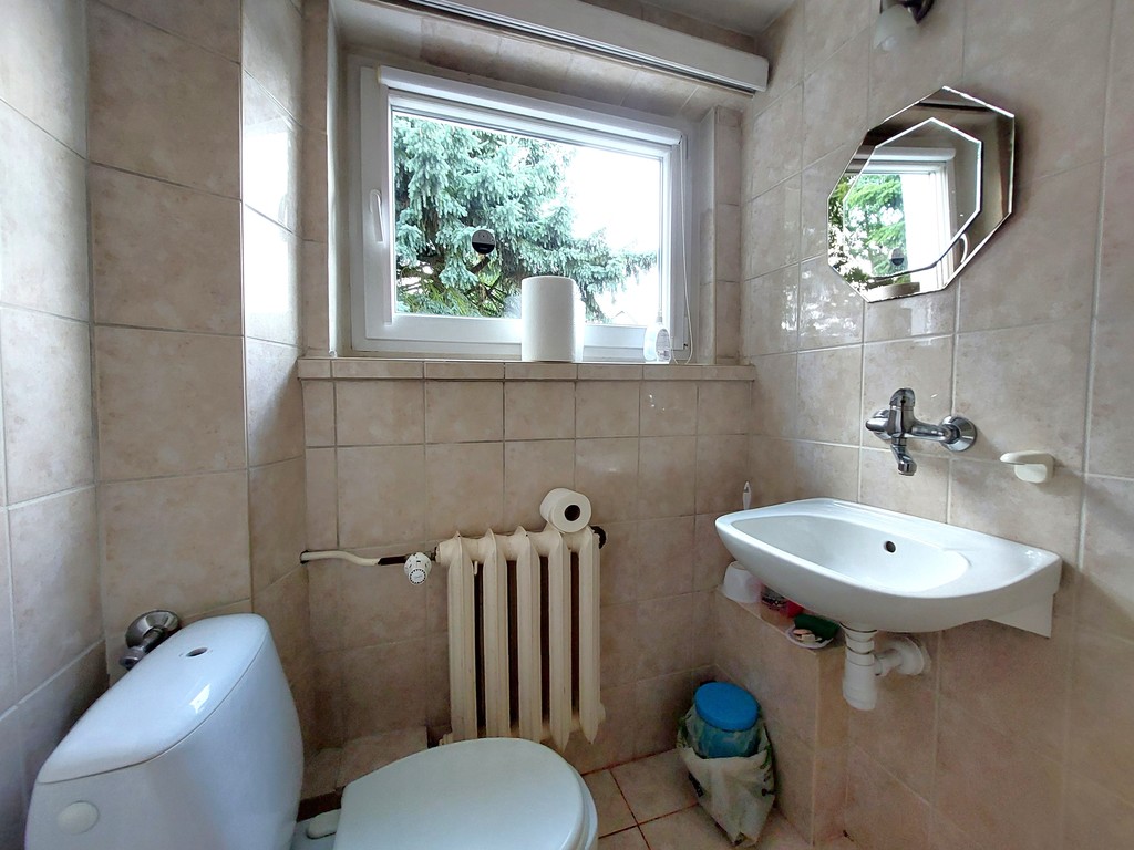 Dodatkowo w przyziemiu znajdują się 3 pomieszczenia w tym garaż, warsztat (ok 35 m2) i pralnia.