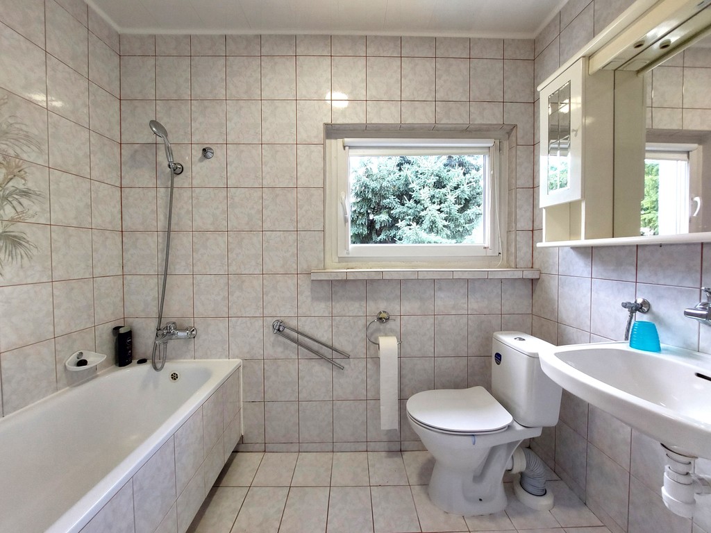Dom składa się z salonu, naprawdę 3 dużych sypialni, kuchni, 2 łazienek z WC oraz osobnego WC.