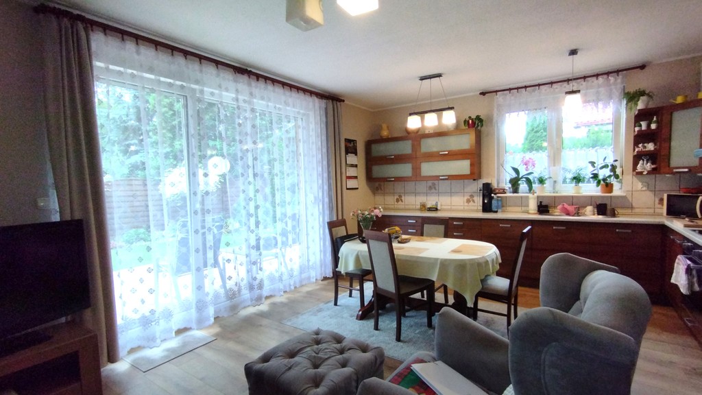 - Salon z aneksem kuchennym z bezpośrednim wyjściem na taras