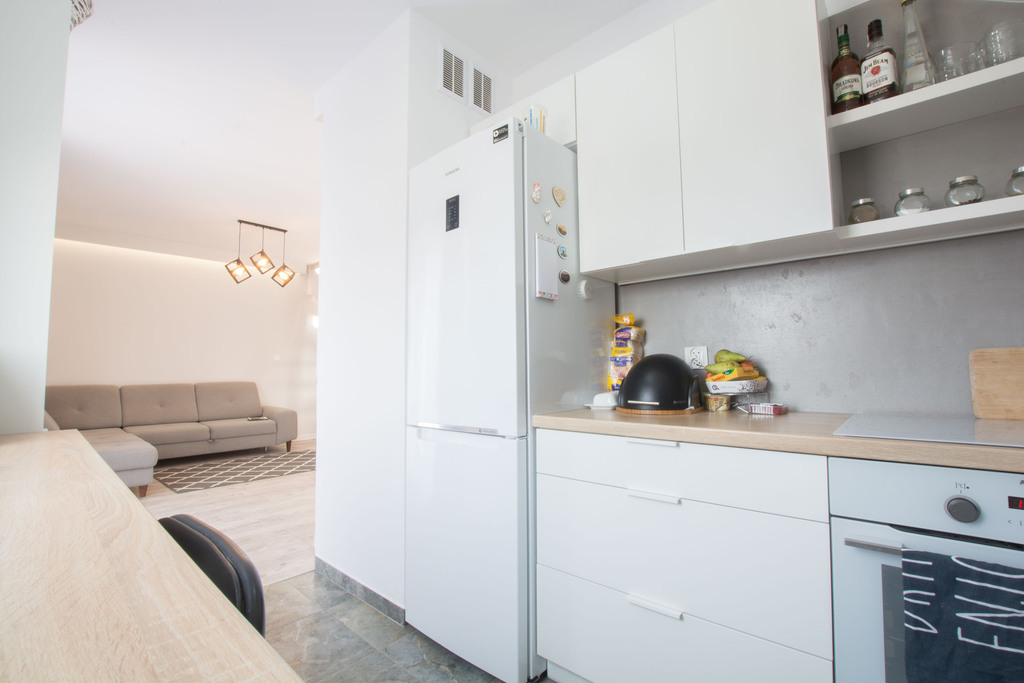 Mieszkanie urządzone gustownie, według własnej aranżacji właścicieli. Wykonane w stylu skandynawskim. Pomieszczenia są przestronne, ustawne i słoneczne. Usytuowane jest na nowym osiedlu Ostoja w Warzymicach, przy ulicy Irysowej. Jest to bardzo udana inwestycja czołowego szczecińskiego dewelopera f-my Makdom.