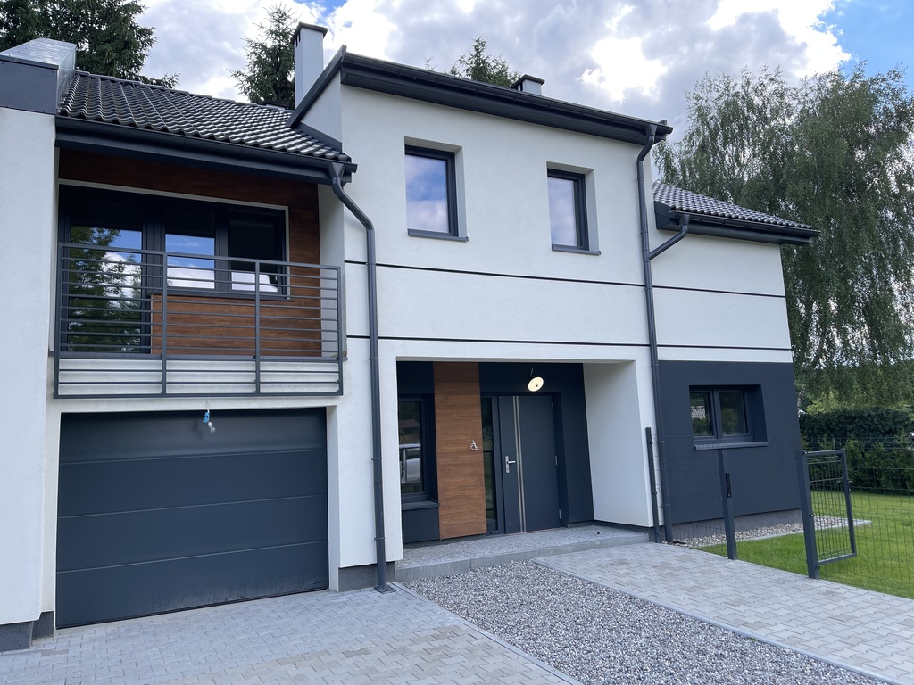 Budynek bardzo starannie wykonany z wysokiej klasy materiałów. Antywłamaniowe drzwi wejściowe i brama garażowa firmy Wiśniowski. Okna o średnim współczynniku ciepła 0,75 W/m2*K.