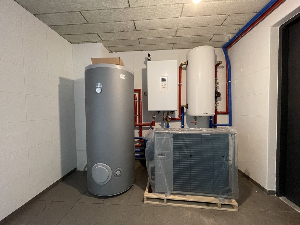 Kominy spalinowe pod kominek Hoch. Na parterze ogrzewanie podłogowe - pompa ciepła Nibe.