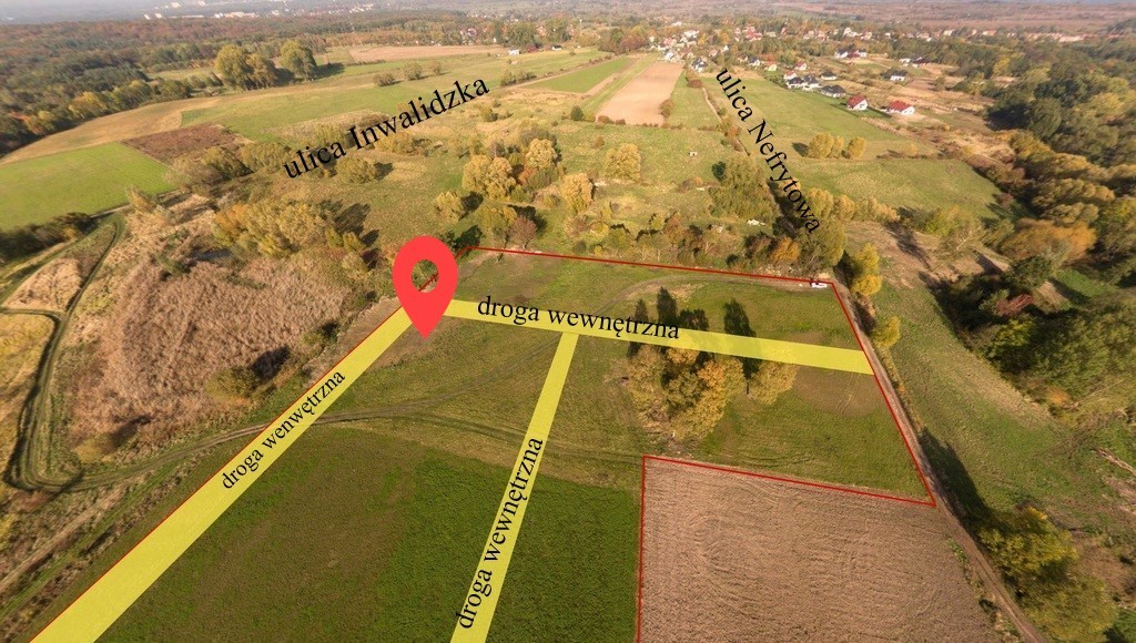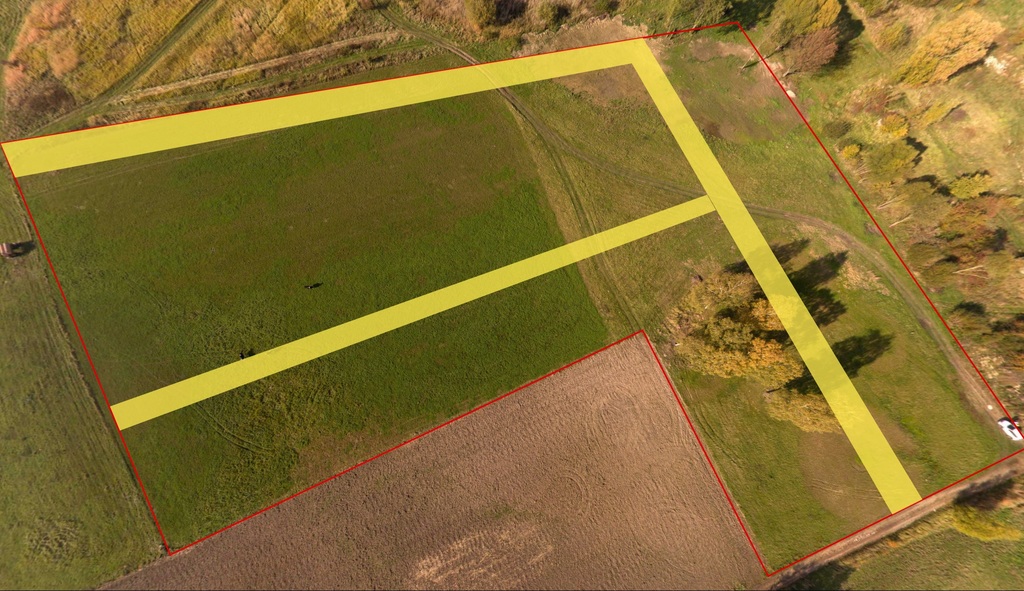Kształt: Prostokąta (23 x 47m), udział w drodze wewnętrznej.