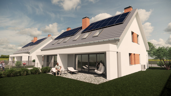 Dodatkowo budynki zostaną ocieplone styropianem grafitowym o grubości 20 cm, poddaszę ocieplone będzie pianą pur o grubości 30 cm oraz zostaną zamontowane trzyszybowe okna PCV i okna połaciowe VELUX.