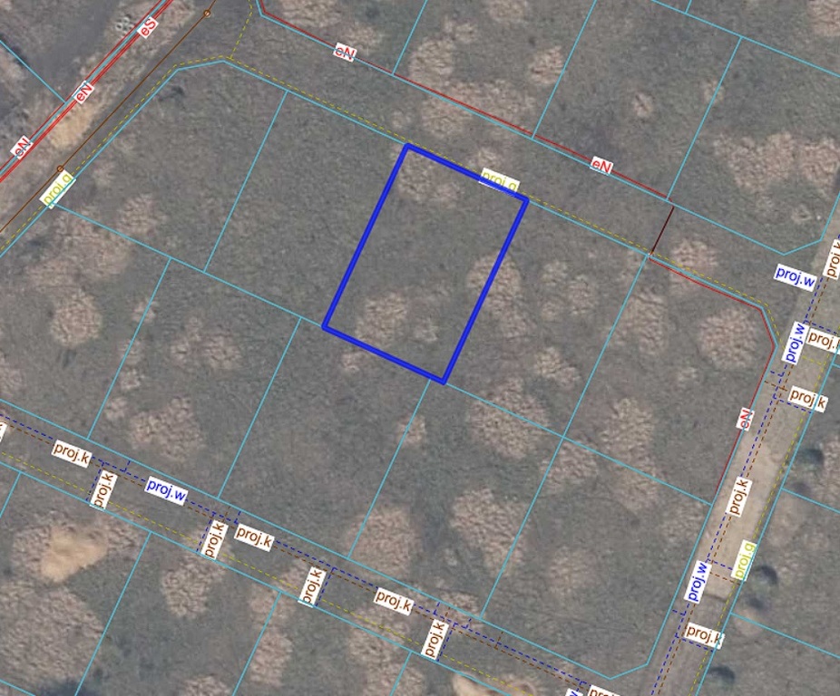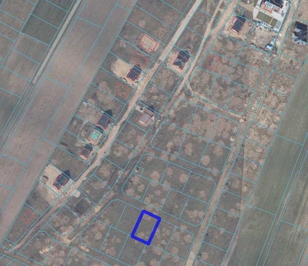 Działka w kształcie prostokąta o powierzchni 805 m2 objęta miejscowym planem zagospodarowania przestrzennego.