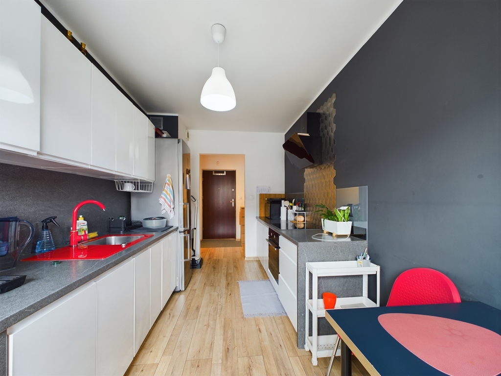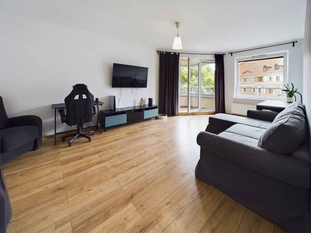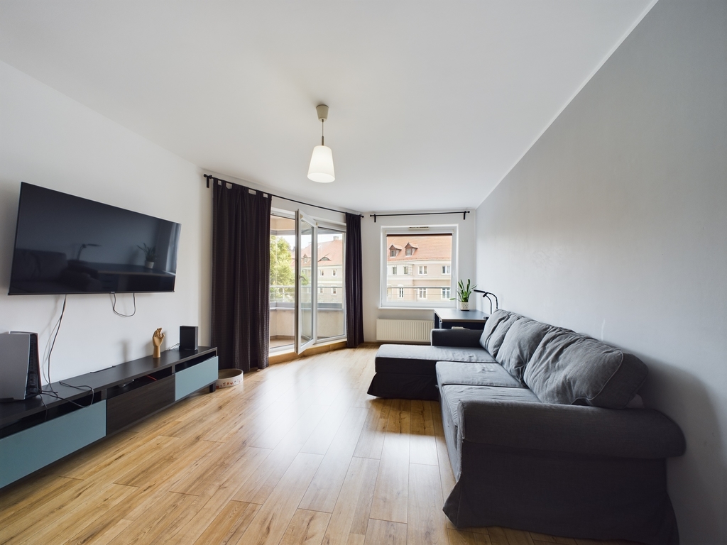 • Funkcjonalny układ pomieszczeń: Mieszkanie składa się z przestronnego salonu z bezpośrednim wyjściem na balkon, który stanowi serce domu, jednej przytulnej sypialni, osobnej kuchni, łazienki. Każde pomieszczenie zostało starannie zaprojektowane, aby zapewnić maksymalny komfort mieszkania.