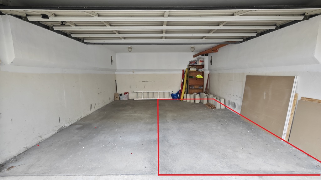 Wymiary całego garażu - długość 5m, szerokość 4,60m. Wymiary oferowanej połowy garażu - długość 5m, szerokość 2,30m. Wymiary bramy wjazdowej do garażu - szerokość 4,20m, wysokość 1,97m. Wysokość garażu wewnątrz - 2,06m. W garażu znajduje się prąd (osobne liczniki dla lewej i prawej połowy). Miesięczny czynsz do spółdzielni na poziomie około 85zł.