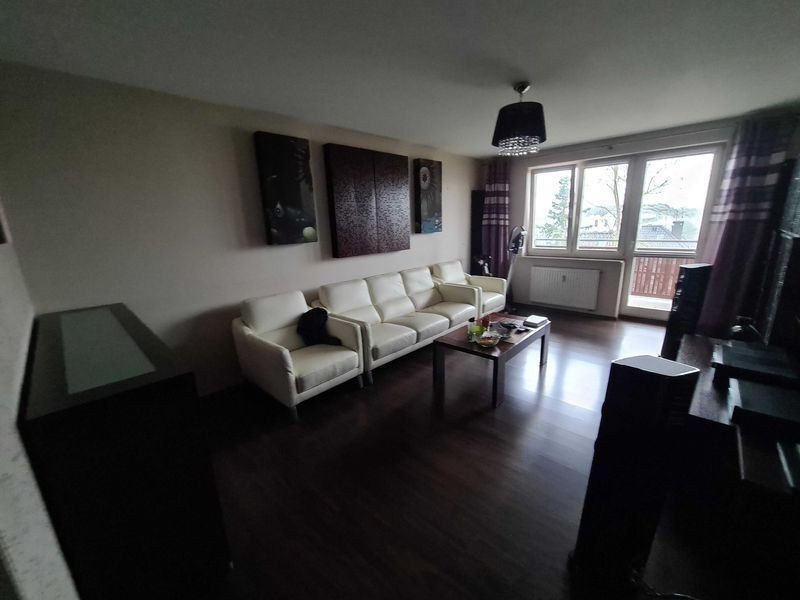 - jasny, przestronny salon z bezpośrednim wyjściem na przestronny balkon z widokiem na panoramę miasta