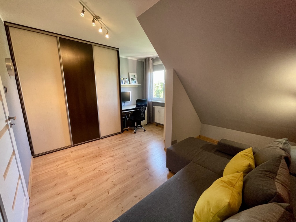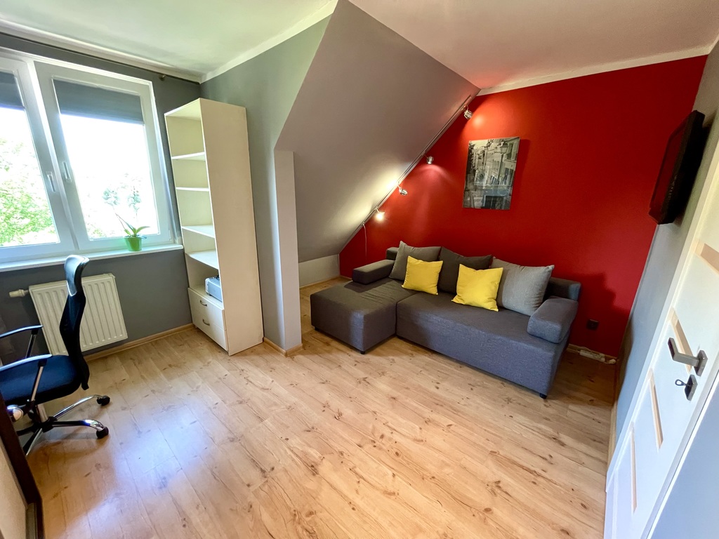 Ogromnym atutem tego mieszkania jest możliwość adaptacji poddasza i powiększenie nieruchomości o kolejne 40m², co pozwoli stworzyć apartament o powierzchni ok. 90m². Uzyskano od Gminy wstępne warunki określające możliwość przeprowadzenia adaptacji.
