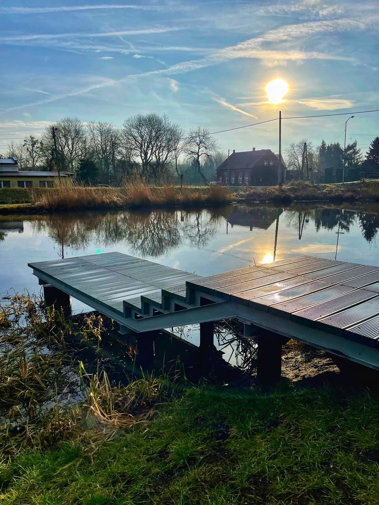 - Bulwary nad rzeką Łarpią z miejscem do odpoczynku wraz ze strefą fitness, miejscem na grilla, kajakami itp. 500m,