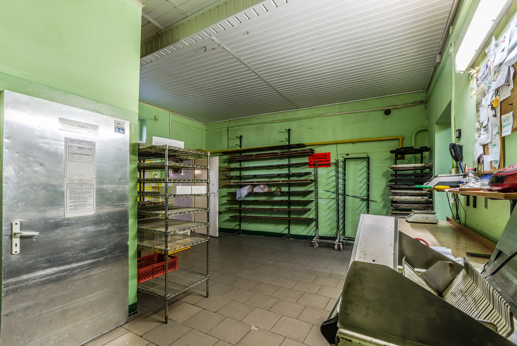 Przedmiotem sprzedaży jest atrakcyjny lokal ulokowany na parterze przy głównej ulicy w ww lokalizacji ( w tej chwili produkcyjno - handlowy ) składający się z sali sprzedażowej, zaplecza, dwóch magazynów, hali produkcyjnej, kotłowni, pomieszczeń socjalnych z łazienką i natryskiem o łącznej powierzchni 185,85m2