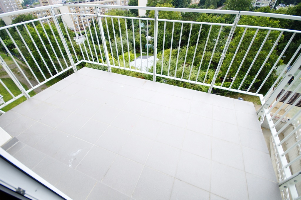 Mieszkanie bardzo ciche. Z balkonu rozległa panorama na miasto. Korytarz oddzielony wewnętrznymi ścianami i drzwiami.