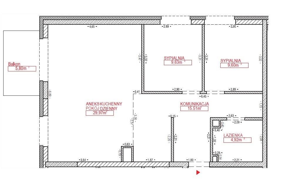 - salon połączony z aneksem kuchennym - powierzchnia 29,97 m2