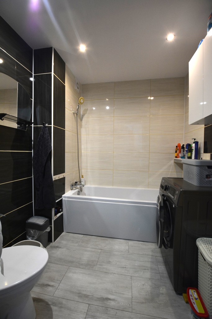Mieszkanie o powierzchni 49,12m2, składa się z dwóch pokoi, kuchni z oknem, łazienki. Wejście do kuchni z salonu, która jest wyposażona w meble i sprzęt AGD w cenie mieszkania. Ściana w glazurze, na podłodze terakota.