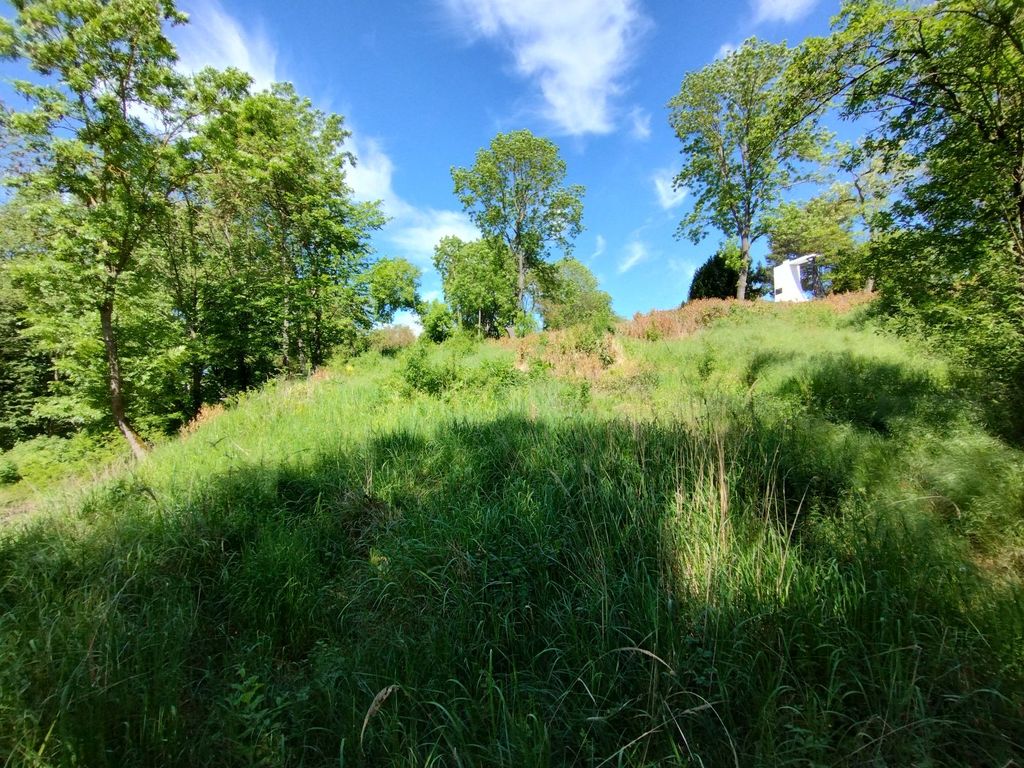 Nieruchomość niezabudowana otoczona drzewami i krzewami. W sąsiedztwie Pomnik Sapera. Dojazd drogą asfaltową.