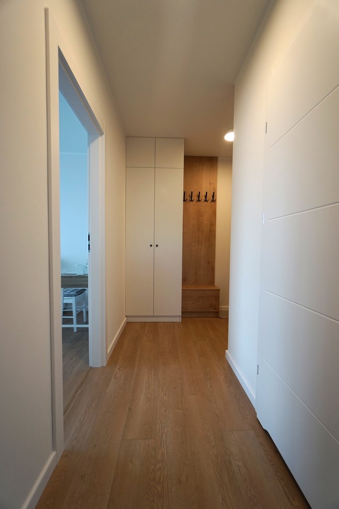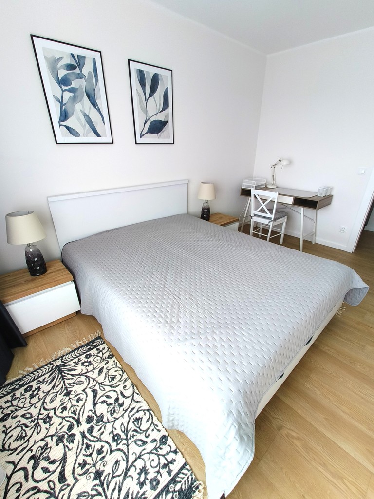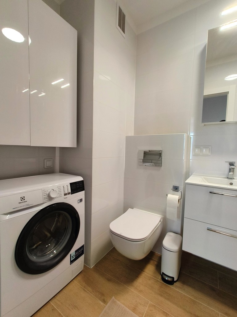 Mieszkanie jest nowe i umeblowane. W mieszkaniu znajduje się pralka, zmywarka, lodówka, piekarnik. Do mieszkania przynależy miejsce postojowe w garażu. Bliskie ułożenie względem klatki schodowej.