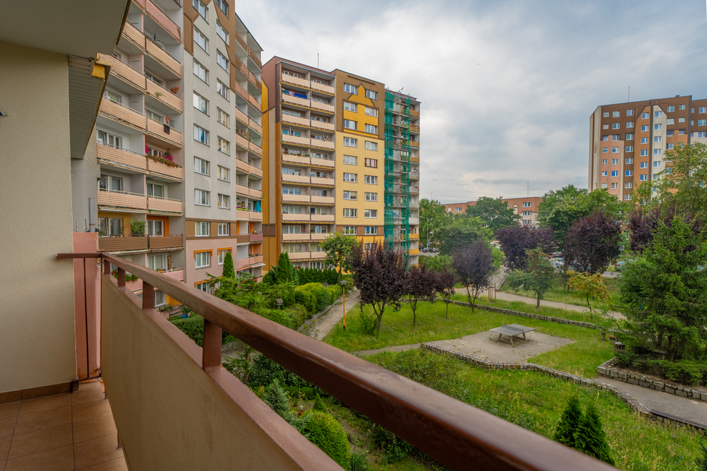 Niekwestionowanym atutem mieszkania jest przestronny balkon (strona południowa) o powierzchni około 5,5 m2 z widokiem na zielone podwórko!