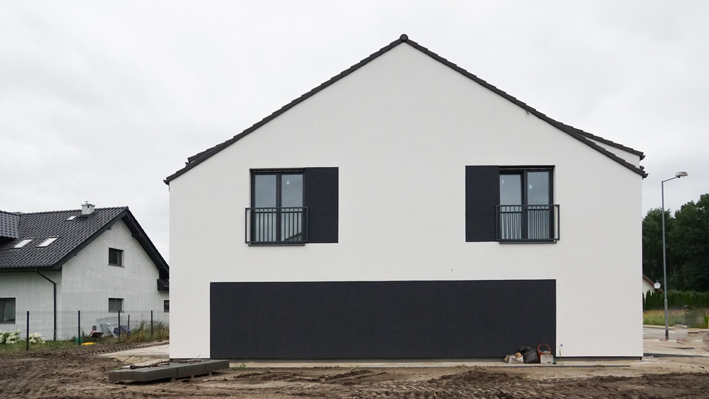 Dom posadowiony jest na działce o powierzchni 500 m2.