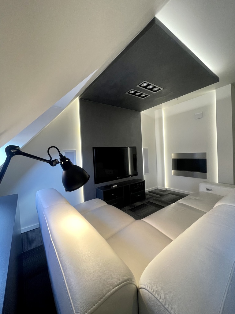 - Wbudowany system TV i rozprowadzone w mieszkaniu głośniki Monitor Audio.
