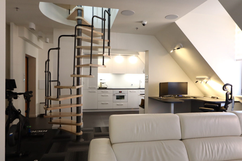 - System Fibaro do sterowania oświetleniem, ogrzewaniem, roletami wewnętrznymi i zewnętrznymi.