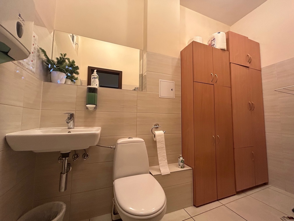 - część "ogólnodostępna", składa się z dwóch pomieszczeń przedzielonych ścianą (do każdego z pomieszczeń jest osobne wejście z przedsionka i każde pomieszczenie jest doświetlone dużym oknem / przeszkloną witryną)