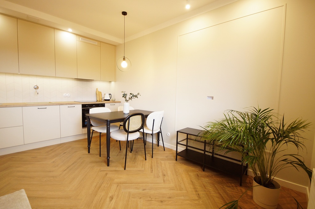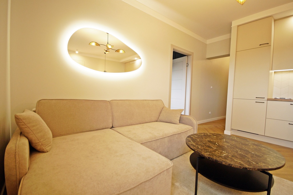Do wykończenia mieszkania użyto wysokiej jakości materiałów, mieszkanie wykończone pod projekt, wyposażone w sprzęty AGD
