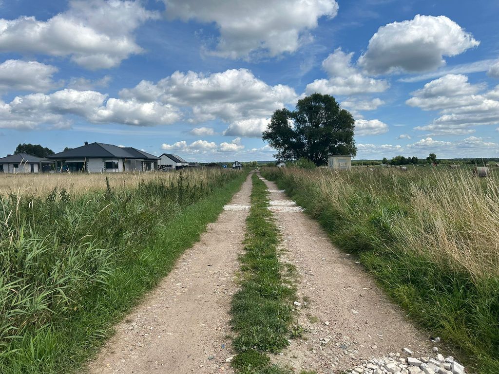 Droga dojazdowa utwardzona dookoła zabudowa jednorodzinna.