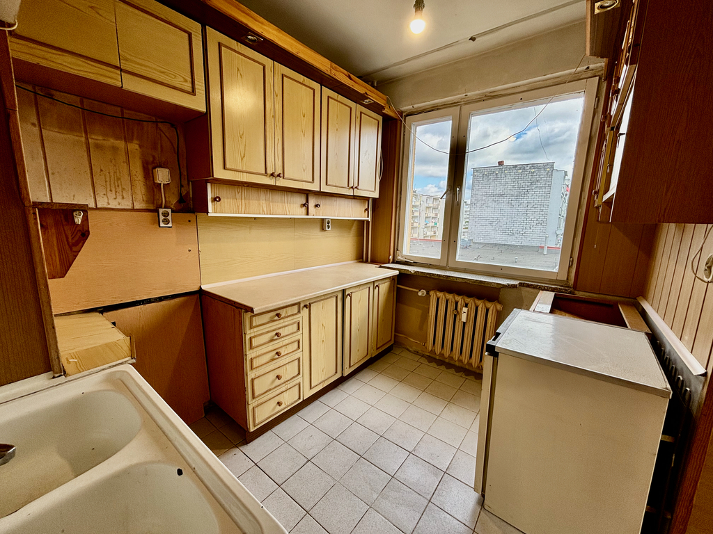 Okna PCV (w kuchni okno drewniane). Mieszkanie w stanie do remontu. Instalacja elektryczna aluminiowa.