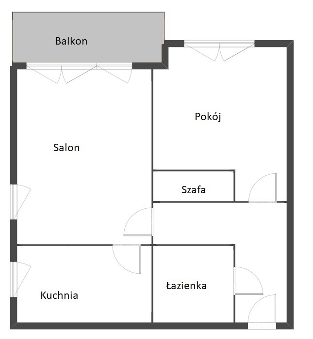 - salon z bezpośrednim wyjściem na balkon typu logia,