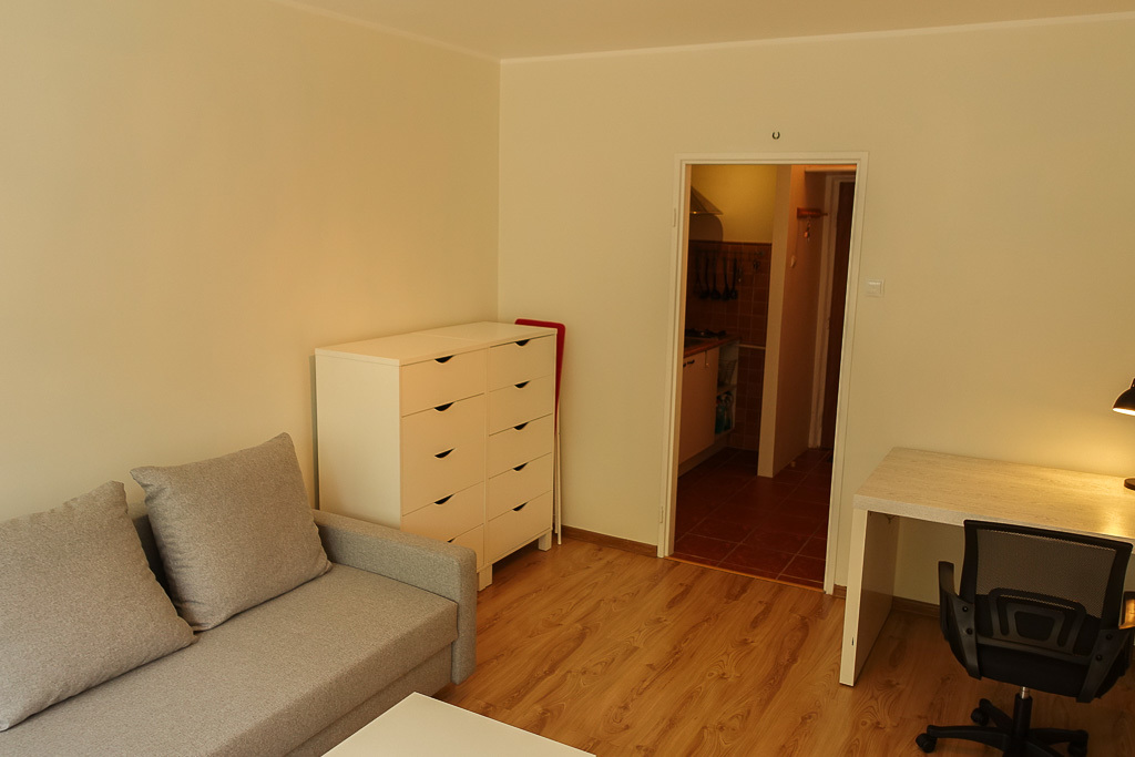 Na pograniczu Śródmieścia i Niebuszewa umeblowana i wyposażona kawalerka 25 m2 położona na II piętrze niskiego budynku w zielonej okolicy. Po remoncie, czysta, zadbana i funkcjonalnie urządzona. Blisko komunikacja miejska autobusowa i tramwajowa, dobry dojazd do centrum i do dzielnic północnych Szczecina. Pokój o powierzchni z oknami na zachód, w nim nowa kanapa 2 - osobowa rozkładana, biurko, stolik kawowy, 2 regały na książki, lampki, oświetlenie górne, panele na podłodze. W kuchni znajdującej się w przejściu do pokoju meble, lodówka z małą zamrażarką, płyta grzewcza gazowa 2 - palnikowa, zlewozmywak. W łazience pralka, kabina prysznicowa, umywalka, szafka wisząca, glazura i terakota. Mieszkanie w cichej lokalizacji z widokiem na zieleń. Blisko kilka sklepów, apteki, niedaleko węzeł komunikacyjny na Rondzie Sybiraków. Dobry dojazd zarówno dla studentów Pomorskiej Akademii Medycznej (bezpośrednia linia tramwajowa), jak i do wydziałów rolniczych, chemii, inżynierii i wielu innych na ZUT oraz na Akademię Morską. Mieszkanie dla singla lub pary. Umowa najmu okazjonalnego lub na firmę. Koszt najmu 1800 zł plus około 400 zł czynszu do spółdzielni zawierającego zaliczki na ciepłą i zimną wodę, ogrzewanie miejskie, wywóz śmieci i odbiór ścieków, oddzielnie energia elektryczna oraz gaz, z którego korzysta się wyłącznie w zakresie płyty gazowej dwupalnikowej obecnie na poziomie około 20 zł miesięcznie.