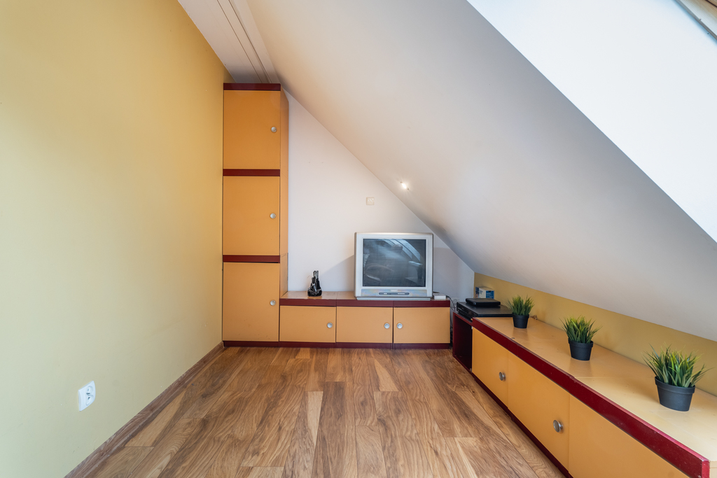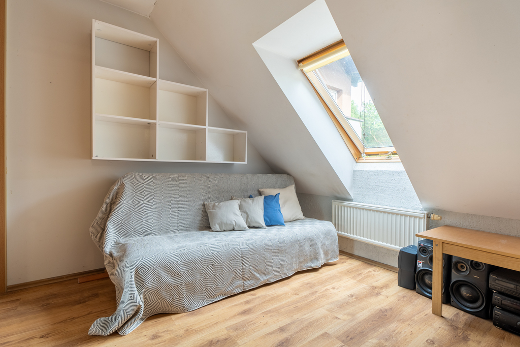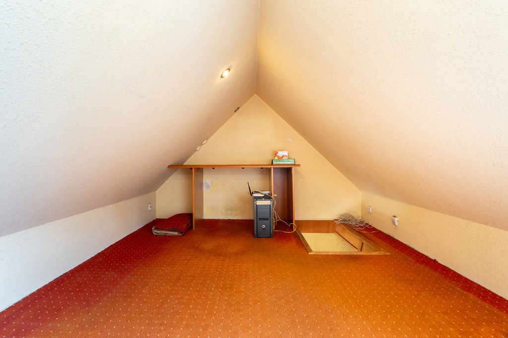 Poddasze służy jako dodatkowe pomieszczenie (sypialnia 3), co na pewno zwiększa znacznie komfort życia codziennego.
